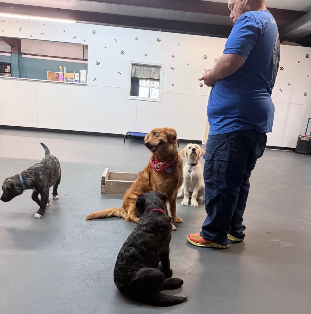 This is a training-based program. Dogs receive structured obedience work, controlled socialization, and enrichment rather than free-play daycare.